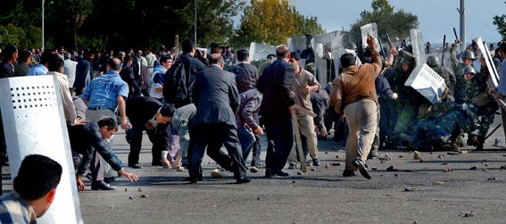 Demonstrators resisting attacks by armed forces sent in to quell protests. ¿Reform Center |